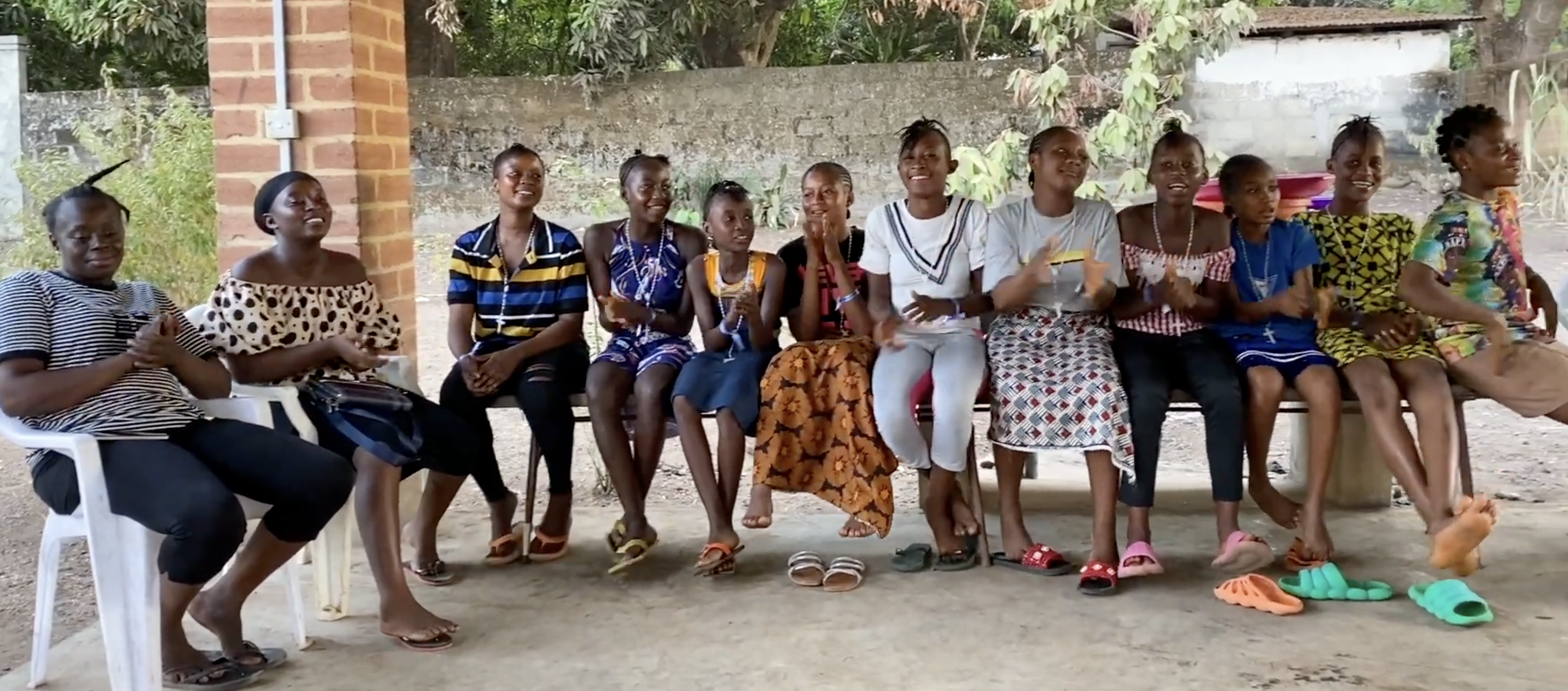 Gloria Yeabu Sesay, una de las estudiantes del internado, comparte su historia: «Mi padre falleció y mi madre me abandonó siendo muy pequeña. El Padre Jess se hizo cargo de mí, de mi familia y de mis hermanas. Éramos siete en la familia. Cuando estaba en el pueblo, no tenía tiempo para estudiar, comer o rezar, pero en el internado tengo tiempo para todo: rezar, comer y estudiar.»